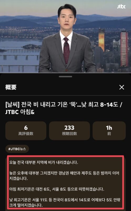 韓国のニュース番組を視聴して、単語の知識を得ていました!